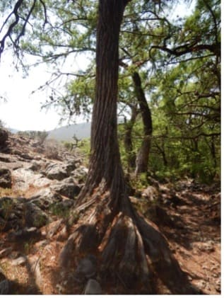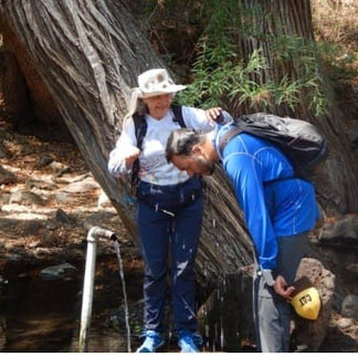 Comenzamos a caminar por la orilla del río que desafortunadamente estaba seco, después de una rato dejamos la vereda y comenzamos a ascender por la pequeña loma del cerro. Después de media hora de caminata, pregunté al grupo si deseaba regresar o seguir un rato más, por lo que acordamos continuar un poco más. Al seguir avanzando nos topamos con una barda de piedra que no podíamos cruzar así que decidimos empezar a bajar hasta encontrar una vereda que nos llevó al río y por ahí regresamos. Fue una ruta más cómoda y sombreada y así seguimos hasta llegar al valle donde habíamos dejado los autos. En total caminamos como una hora. Ya en el valle antes de cualquiercosa, bauticé a los nuevos invitados dándoles de esta manera la bienvenida al club. Luego nos sentamos a descansar, algunos se subieron a los árboles, comimos nuestro lunch, tomamos fotos y regresamos alrededor de la una de la tarde.