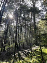 Víctor quería encontrar el camino que nos llevara a la Peña Ojo de Venado, primero tomamos un camino muy bien marcado y pensábamos que ese nos podría llevar a la Peña, pero no, cuando sentimos que nos estabamos alejando nos detivimos para tomar otra dedición, tomar la ruta con mayor desnivel pero que probablemnte nos iba a llevar a la altura que teníamos que estar para continuar a los otros mirados o regresar por el camino bien marcado por el que veníamos. A Memo ya le dolía un poco la rodilla, Joe lo ayudó a cargar su mochila para que tuviera menos peso y así no se lastimara (mio mil gracias!). Ya sin el peso de la mochila decidimos que lo mejor era tomar ese subida para “acortar” un poco. El bosque se veía hermoso, con arboles súper altos, el suelo lleno de musgo… al principio en sendero se veía más marcado, pero poco a se fue cerrando. Kiki y Memo se encargaron de ir abriendo camino, haciendo las ramos a un lado (Joe nos dijo la palabra correta para describir eso, pero ya no la recuerdo). En algún momento empezamos a ver más el cielo, pensamos que ya estabamos cerca de encontrar la ruta correcta para llegar a la Peña y continuar a los otros miradores, pero nos estabamos tardando mucho y ya ibamos atrasados, así que Victor decidió regresar al camino principal por donde habíamos comenzado a subir.